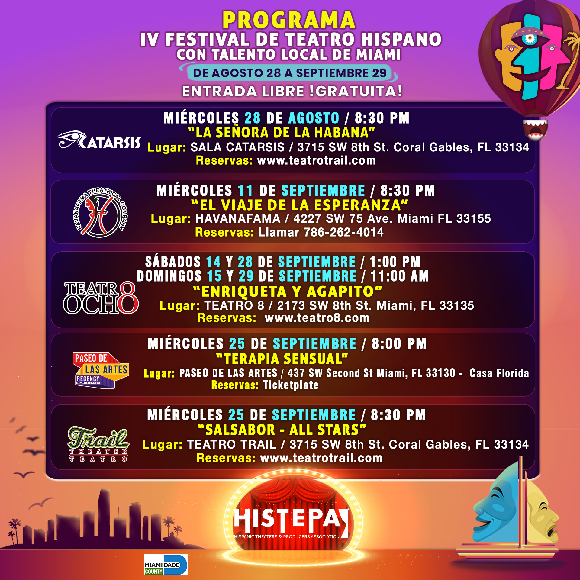 The specific purpose for which this corporation is organized is: Sustain, preserve, spread, foster and contribute to the Hispanic cultural heritage through the development of artistic, literary, and educational Hispanic theater expressions in Florida. The Association’s contribution will offer society or general public from all ages. and demographics with a free space to enjoy and learn from Hispanic theater productions and artists.